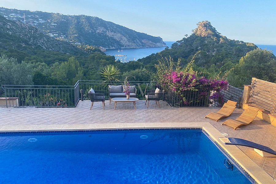 Sitting in an elevated location Villa Saskia enjoys wonderful unobstructed views of the bay of Aiguablava. Originally built in the 1980's and distributed over two floors the house has benefited from a recent restoration including brand new air conditioning units in all of the six bedrooms and updated bathrooms with new showers.