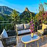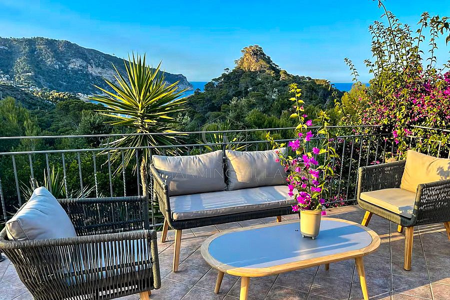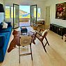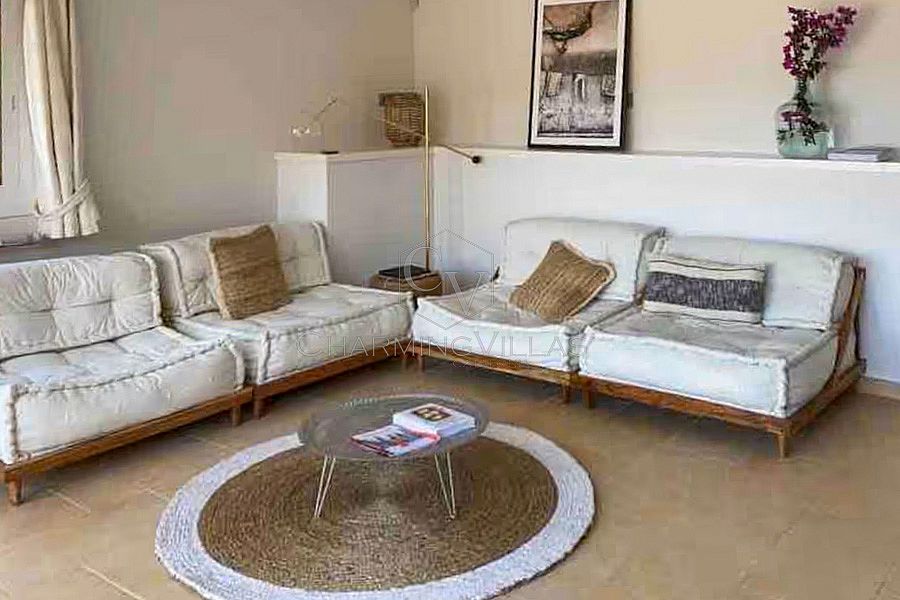 Entrance to the house is through the top floor which comprises of a central Living/TV room/office space with sofas and a Smart TV. There is access to the upper outdoor terrace with comfy seating from where to soak in the sea views. The upper floor also includes three of the bedrooms and two bathrooms.